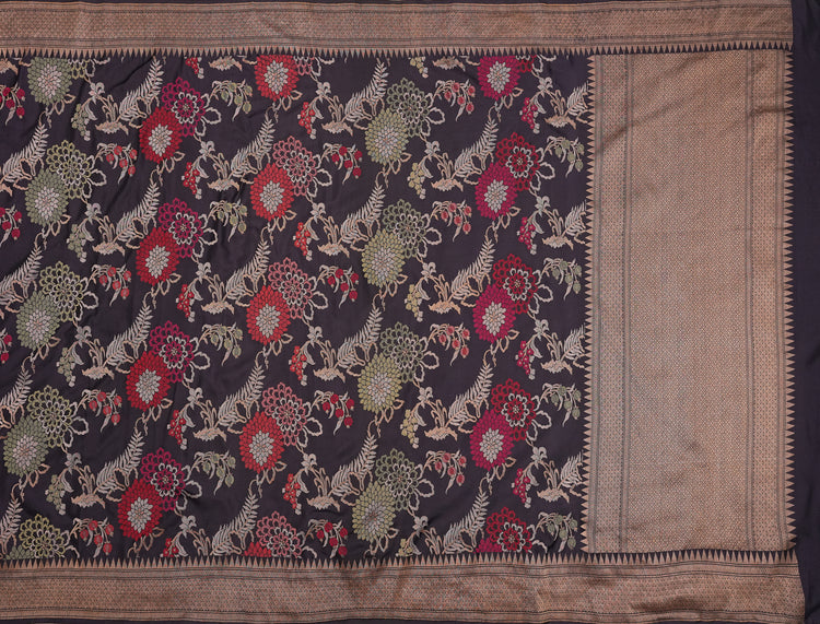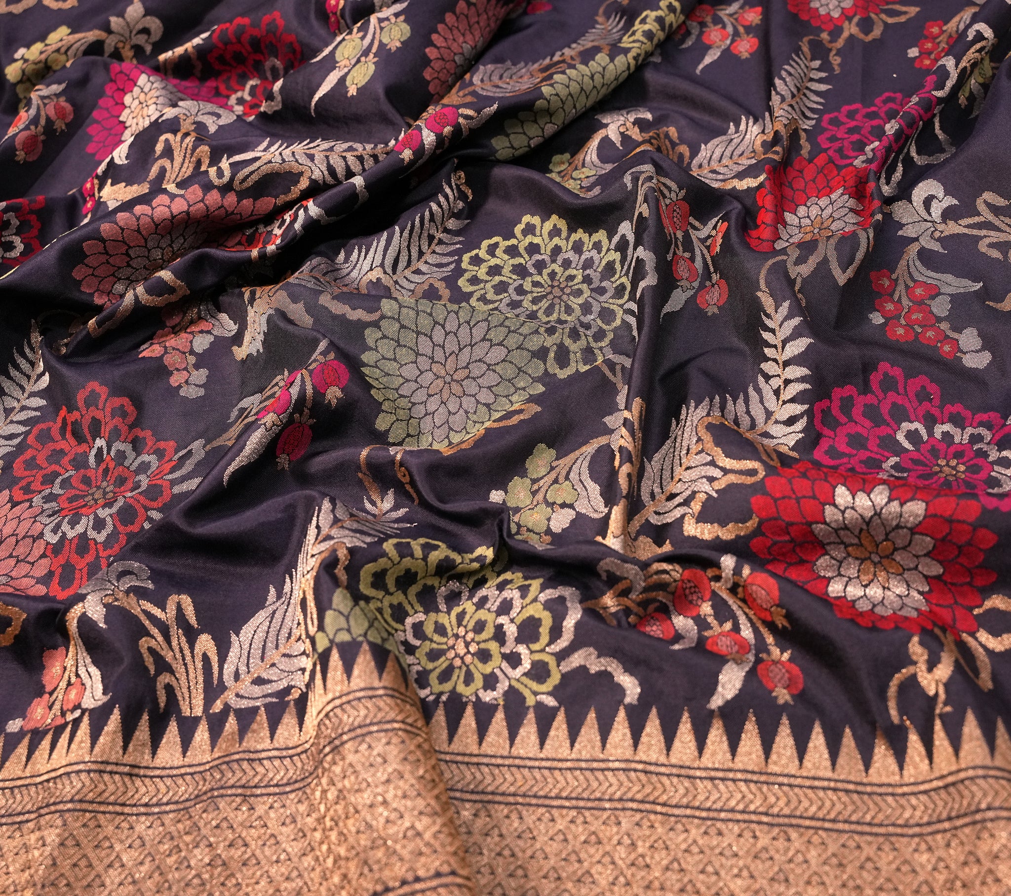 Navy Blue Jamdani Silk Saree | Banarasi Collection