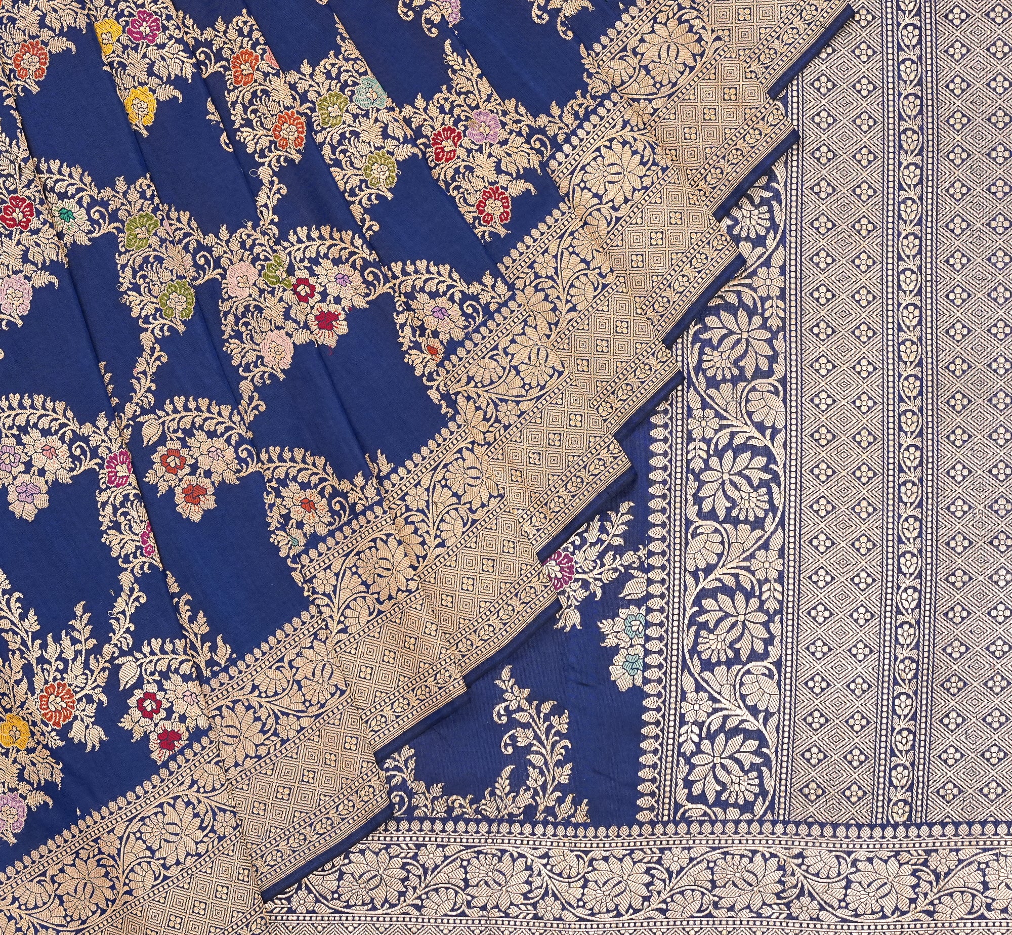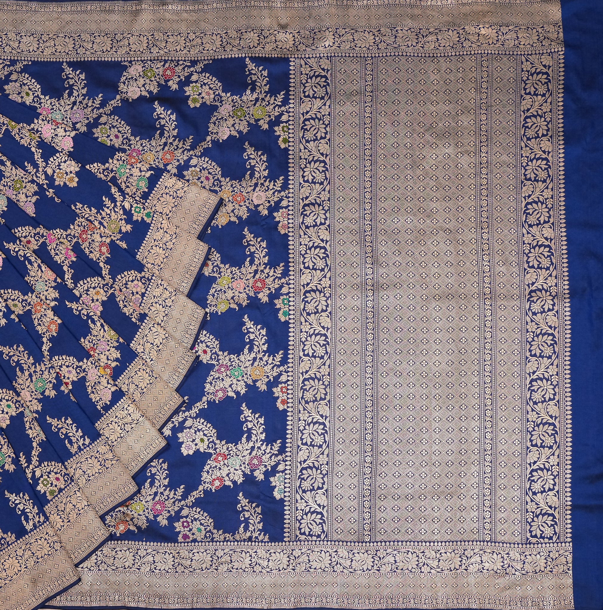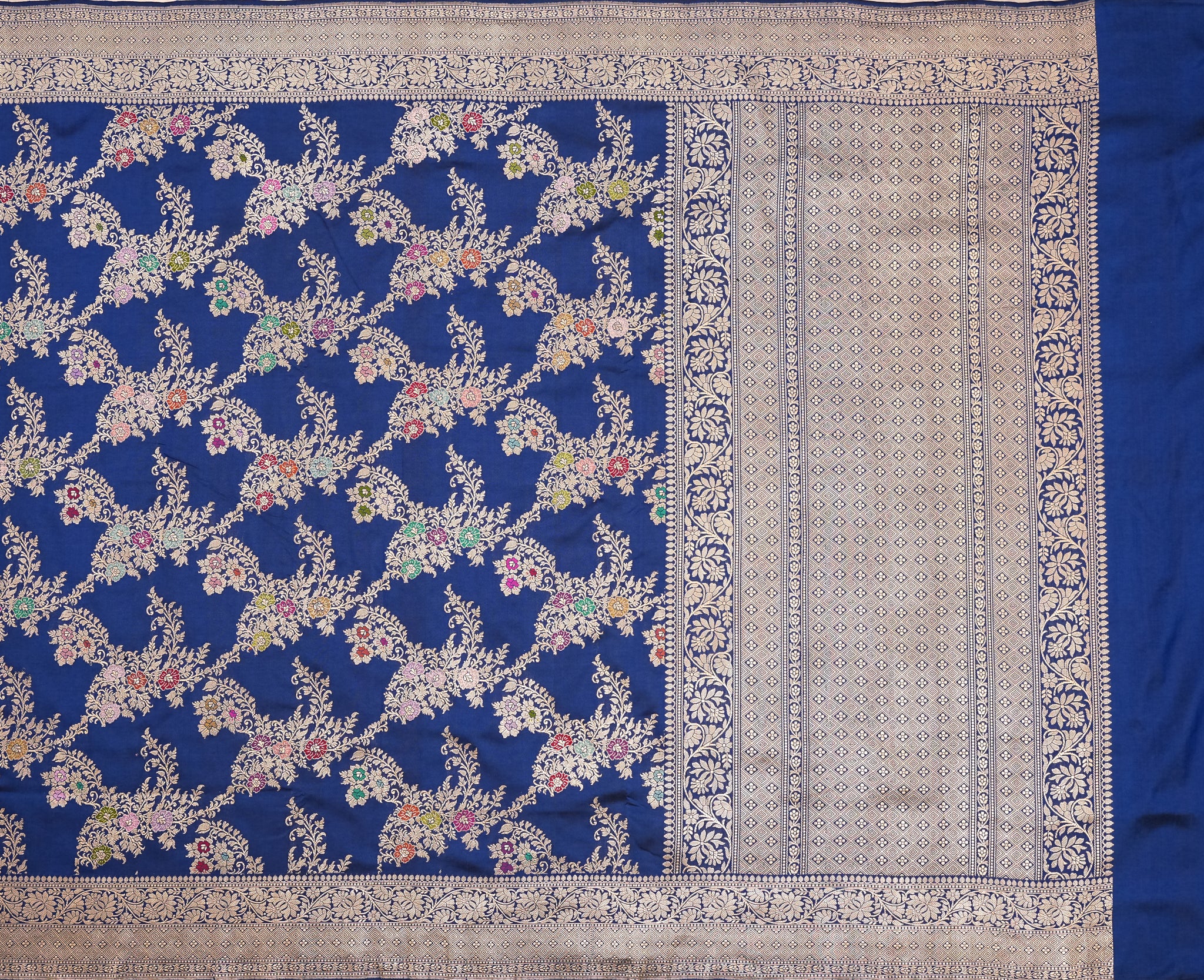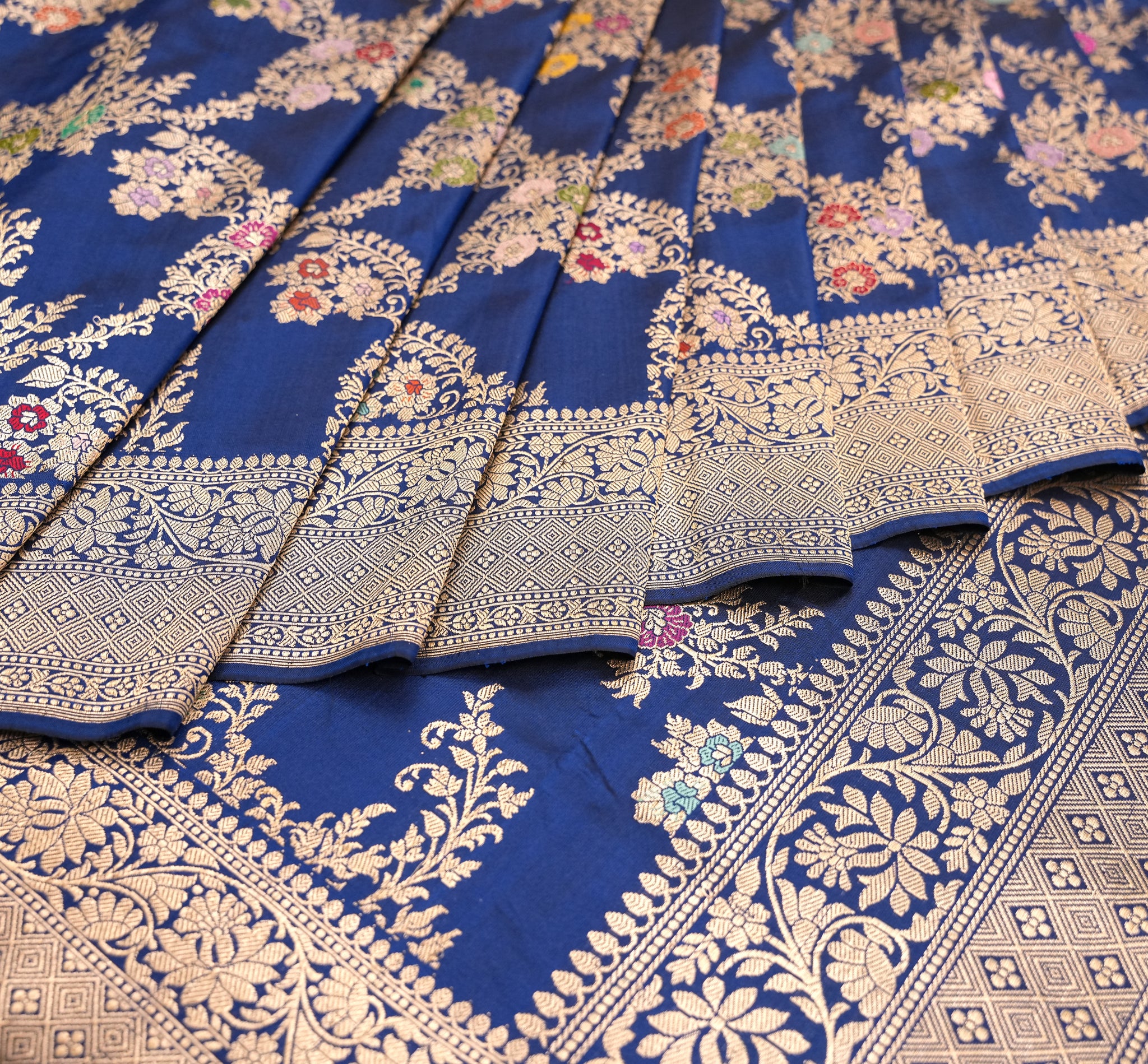 Kadwa Meenakari saree in blue ideal for festive and wedding wear