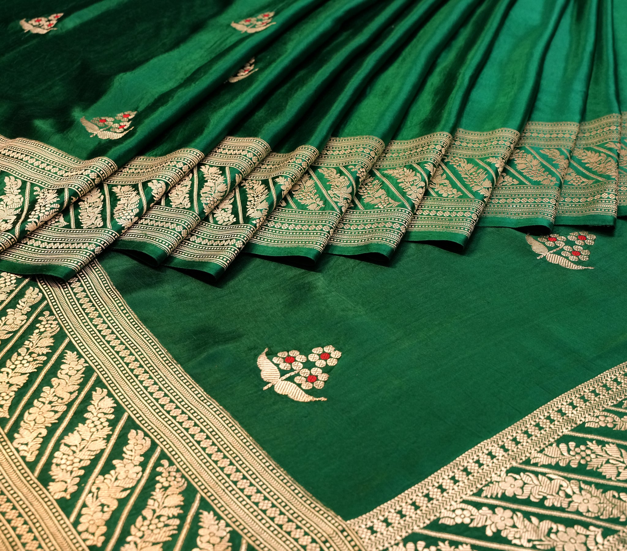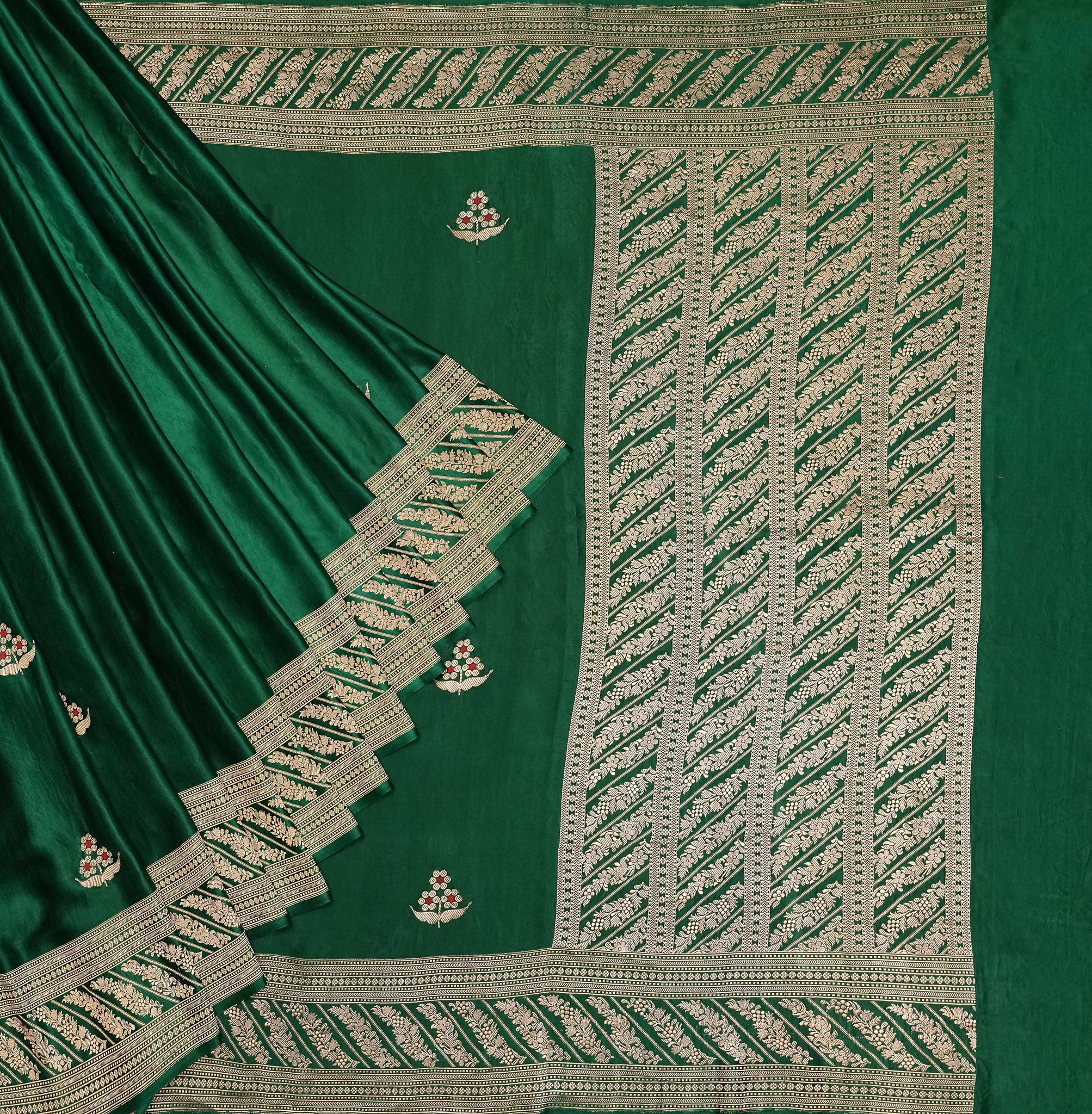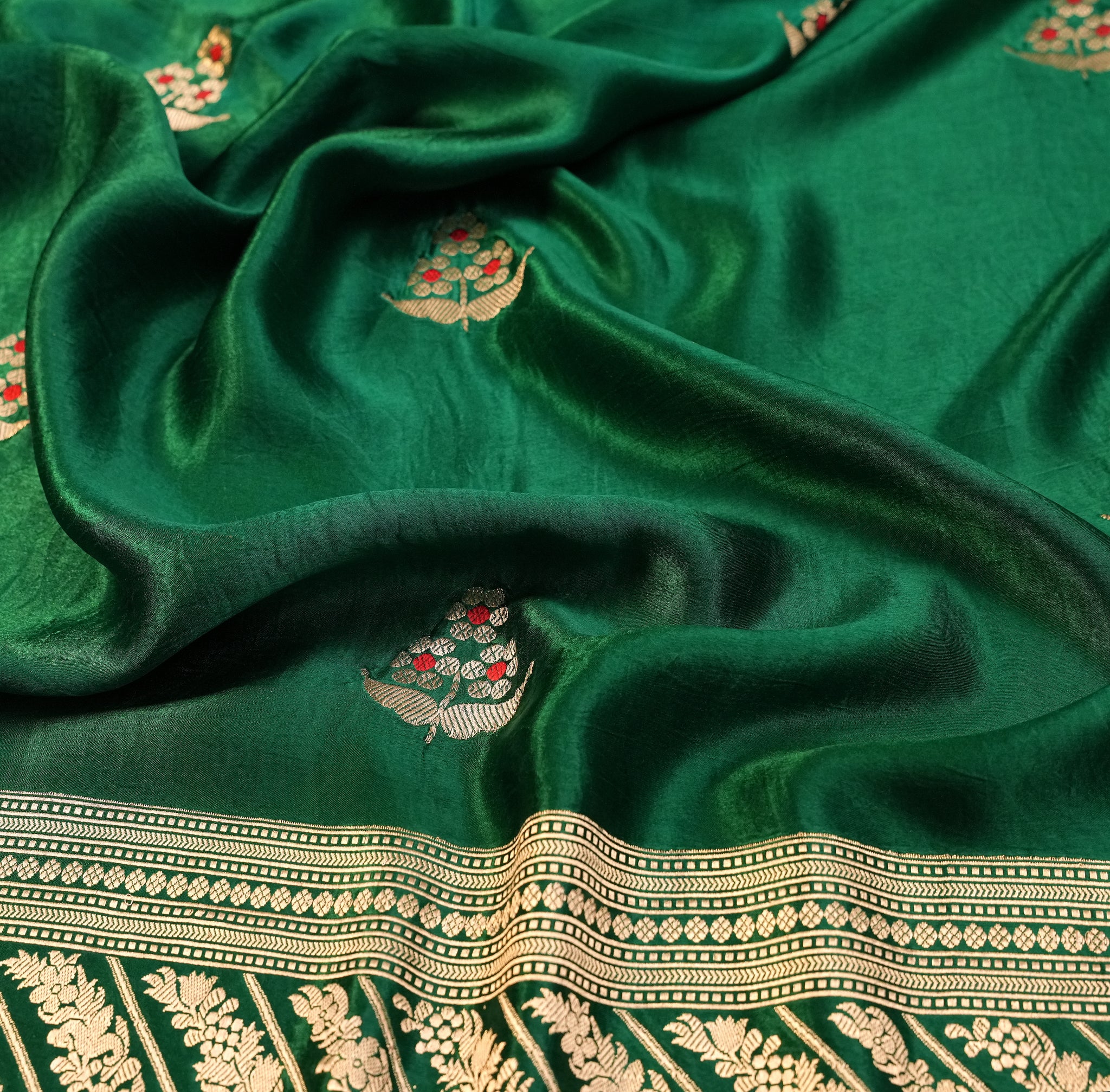 Mashru Silk With Meenakari saree in green ideal for festive and wedding wear