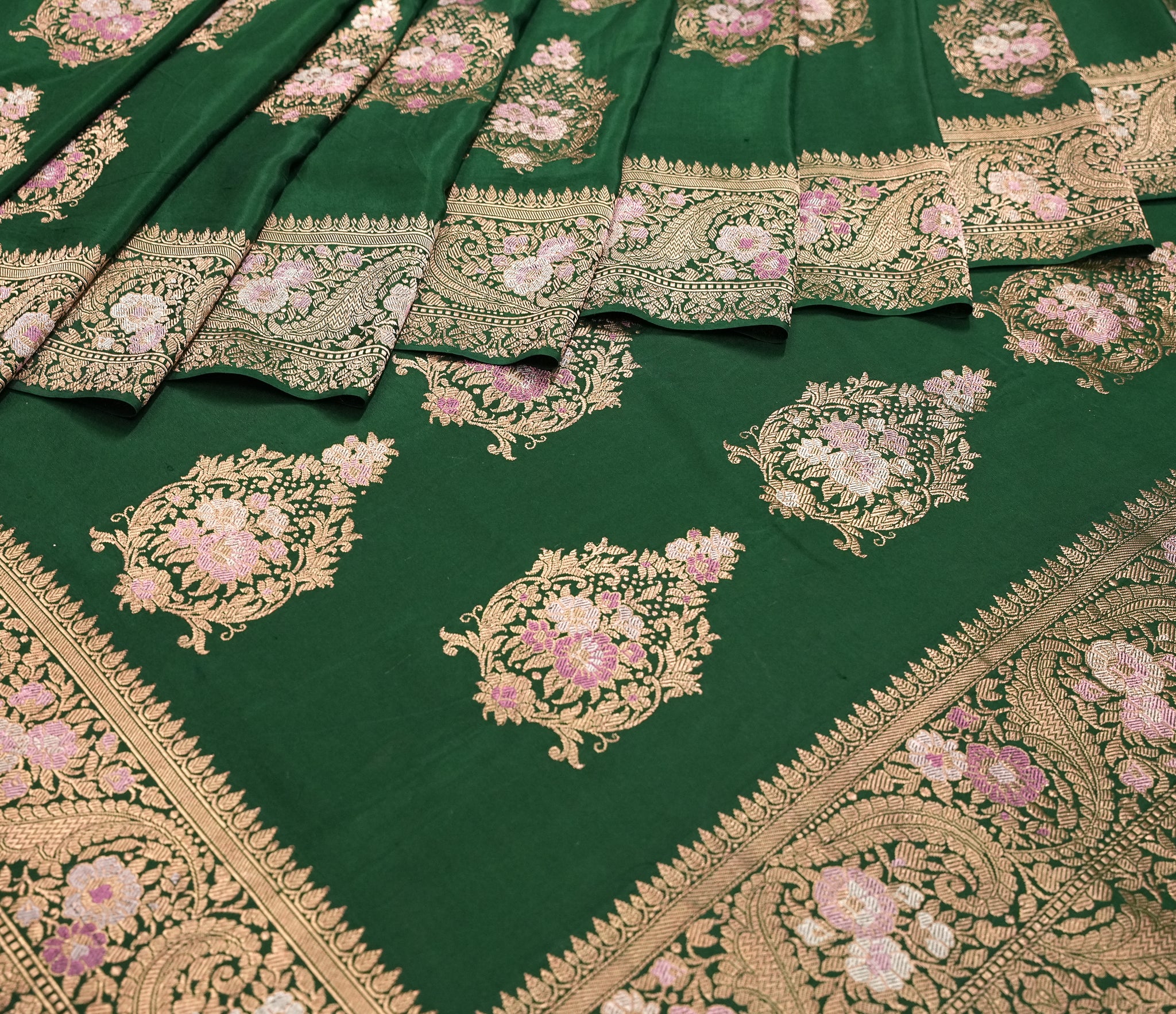Masterweaves With Kadwa Meena Weaves saree in green ideal for festive and wedding wear