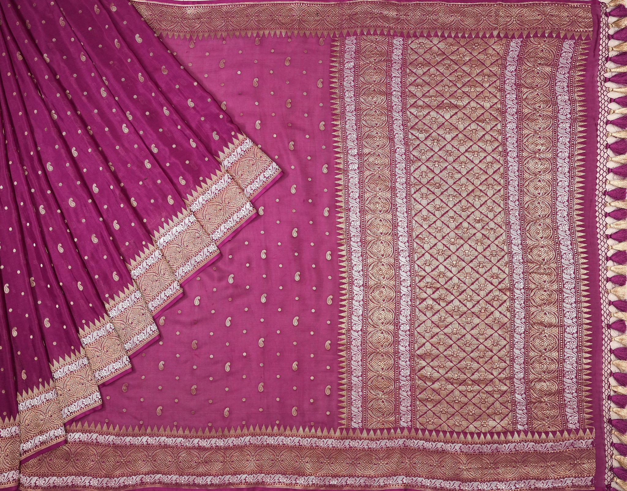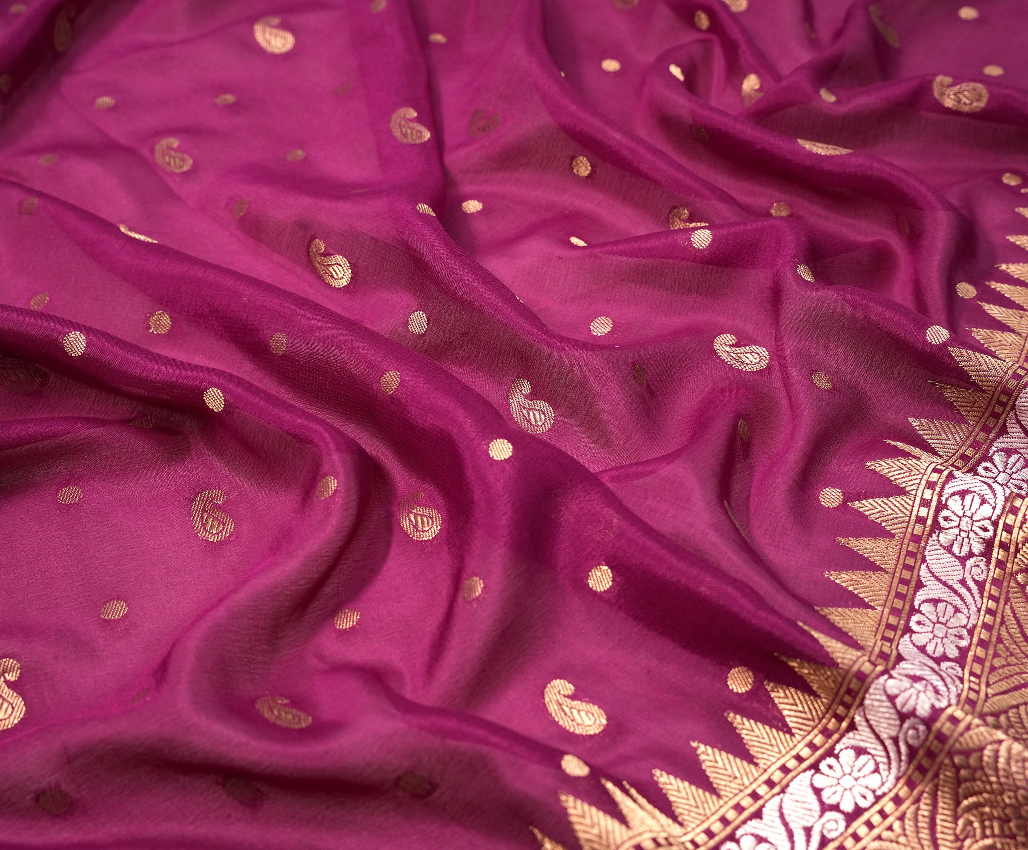 Georgette Butti saree in magenta pink ideal for festive and wedding wear