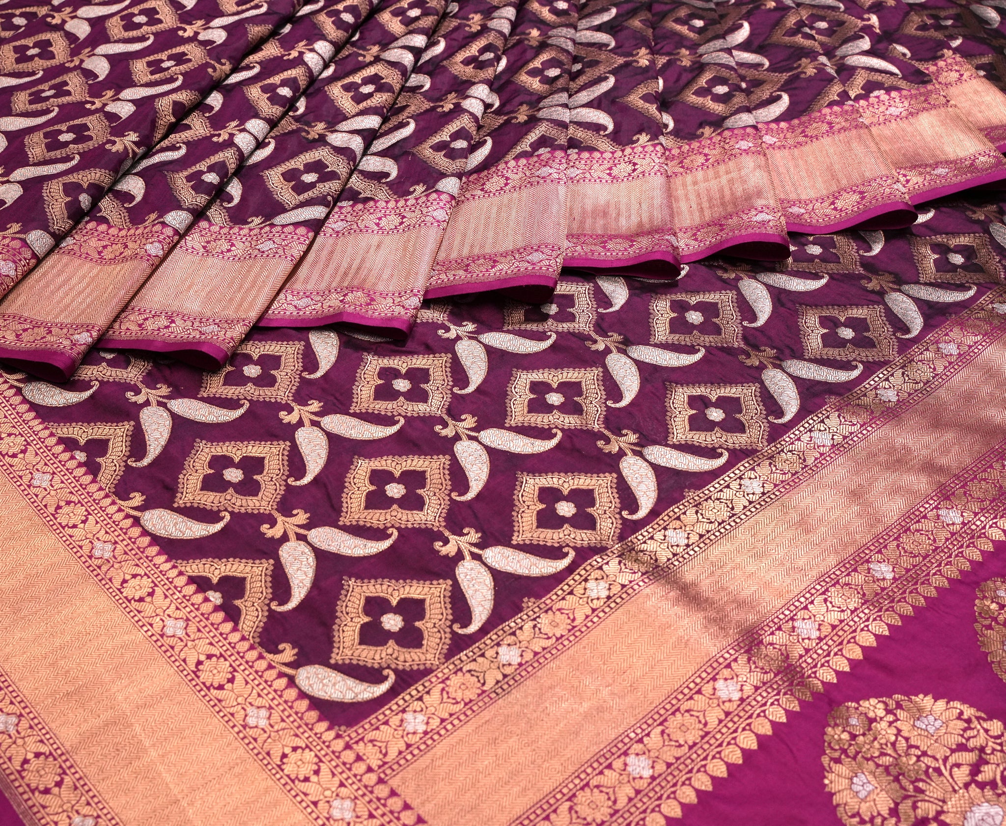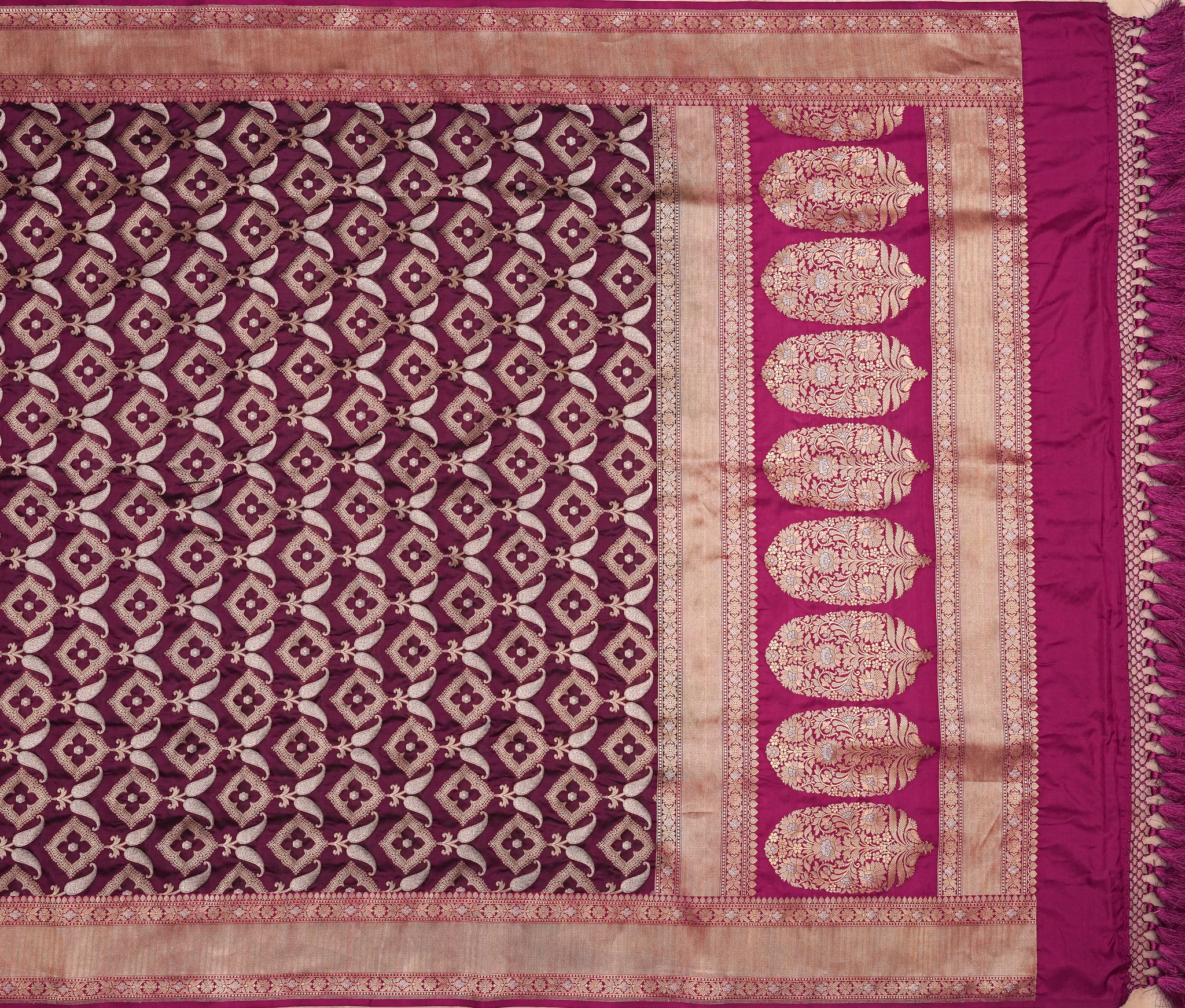 Katan Weaves With Roopa Zari saree in magenta pink ideal for festive and wedding wear