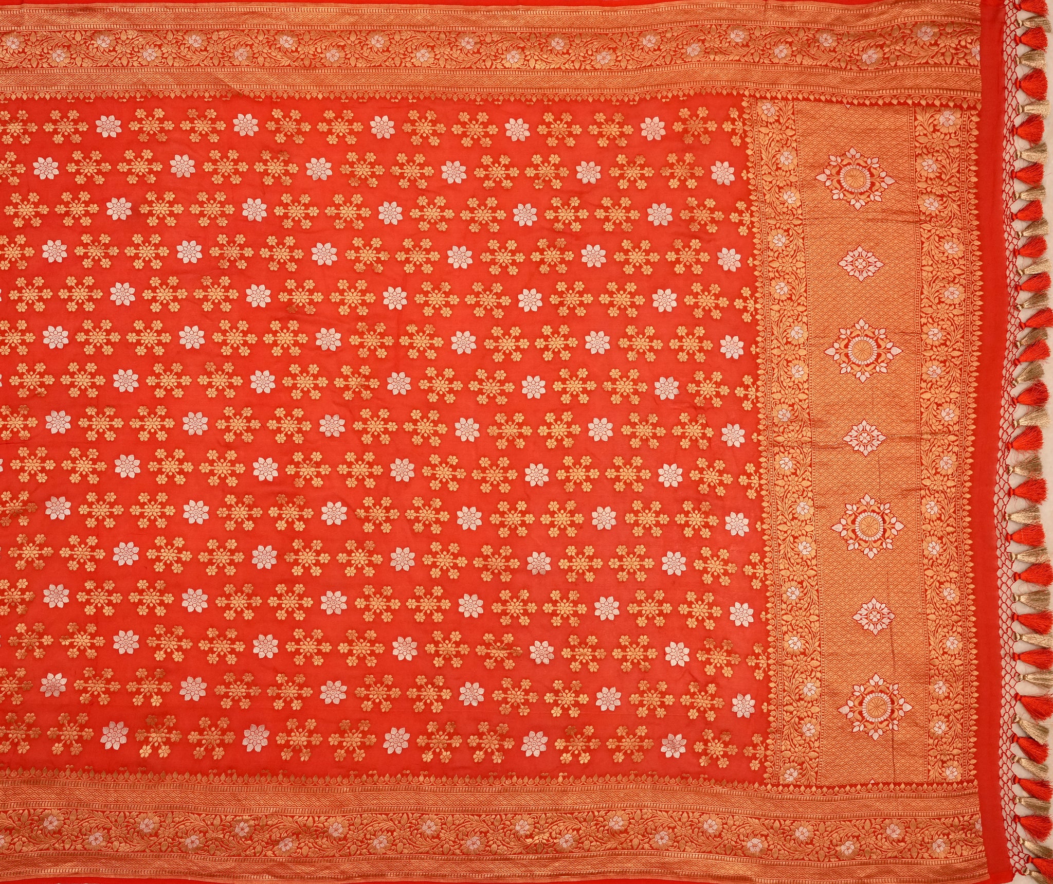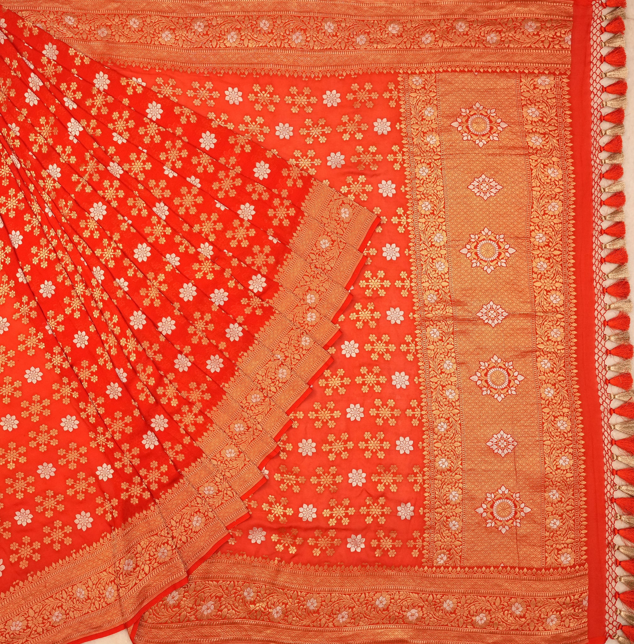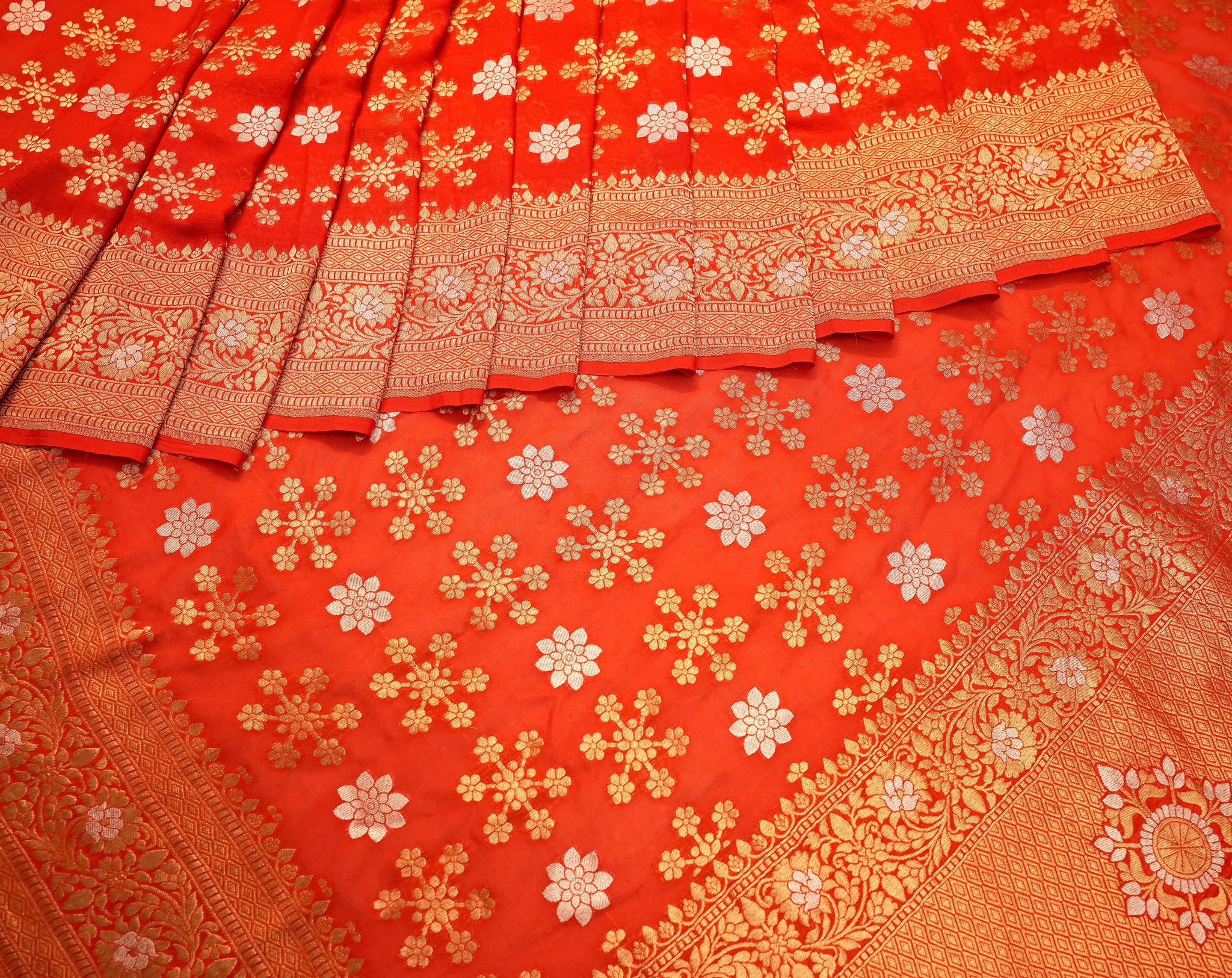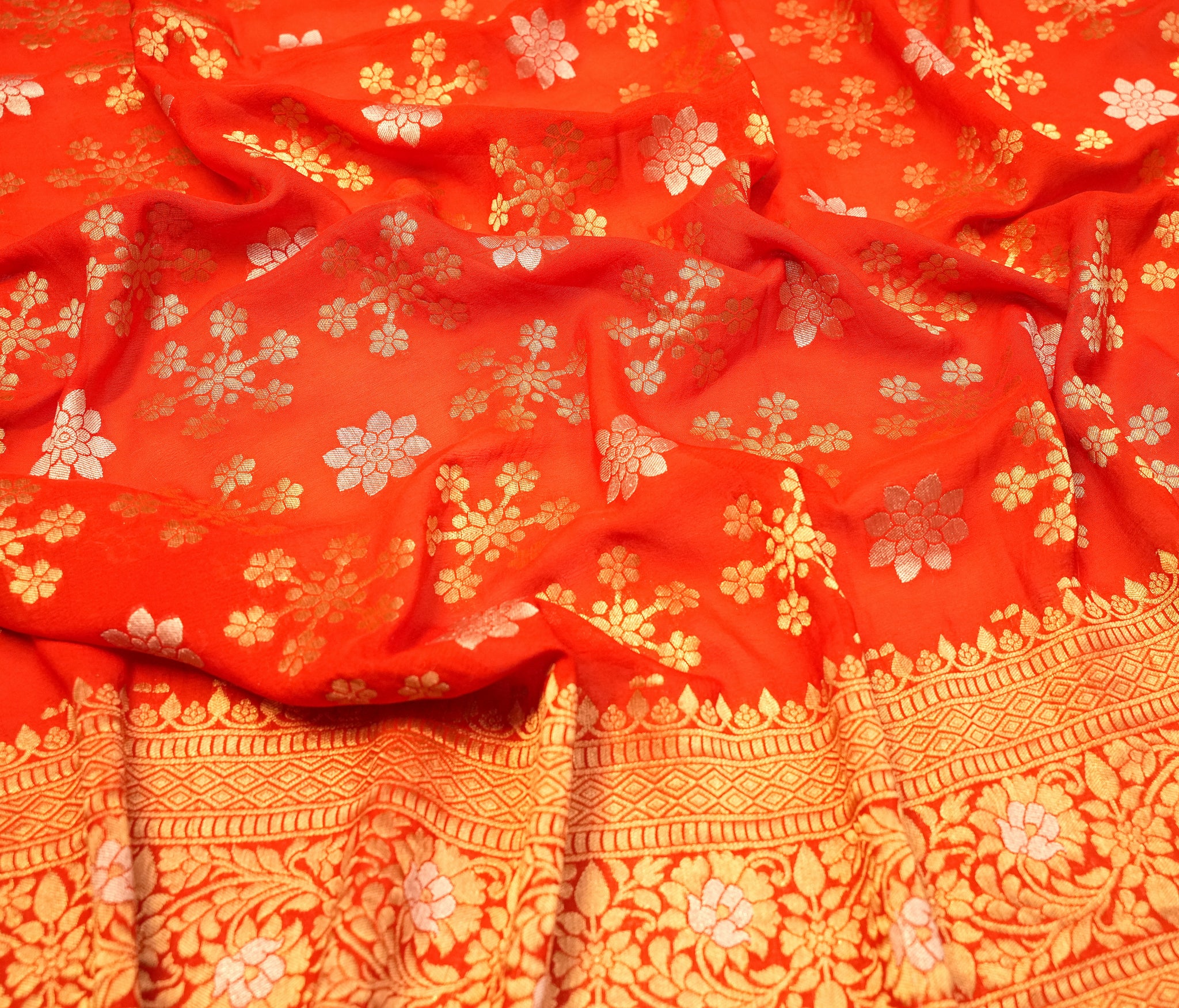 Georgette saree in orange ideal for festive and wedding wear