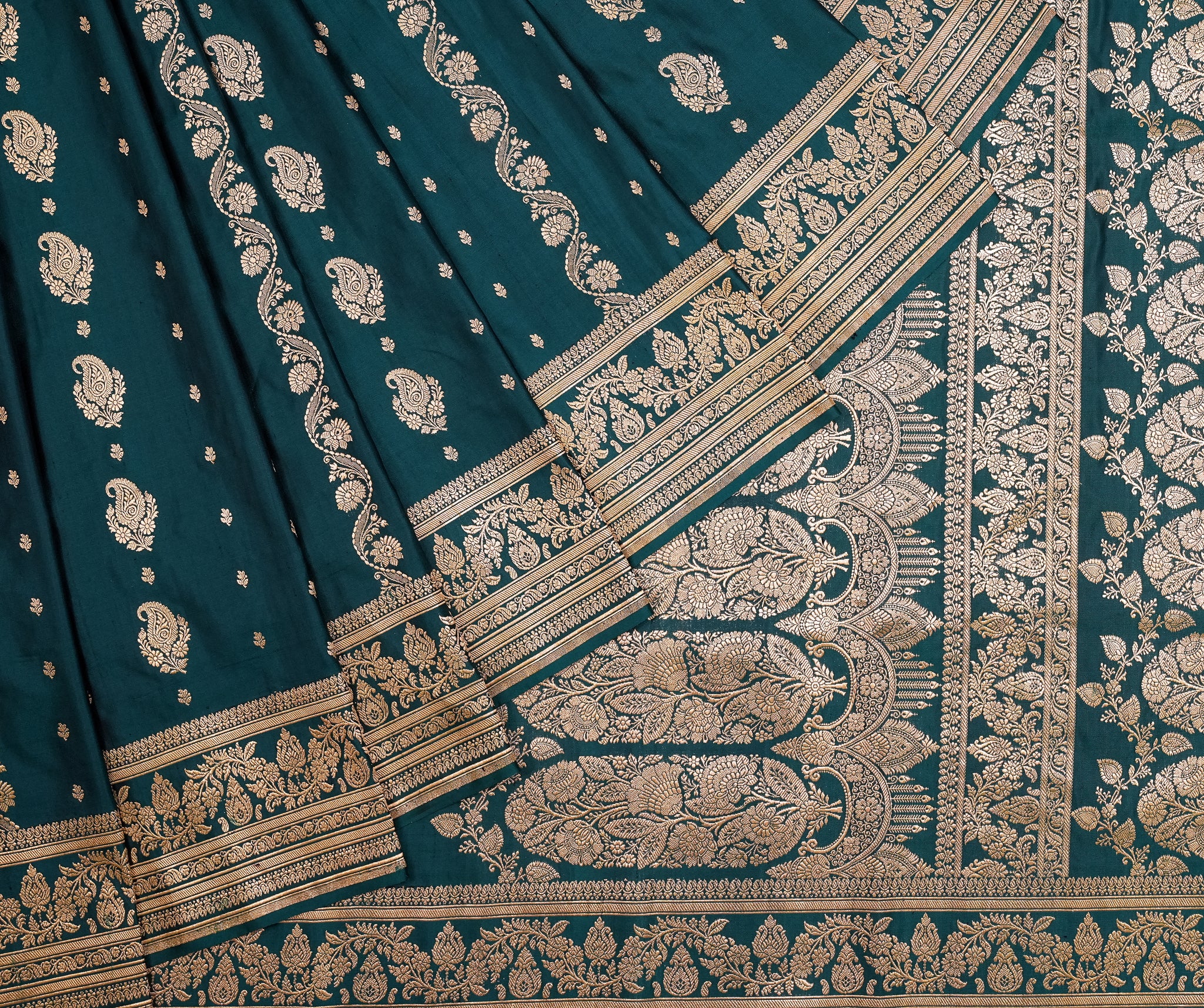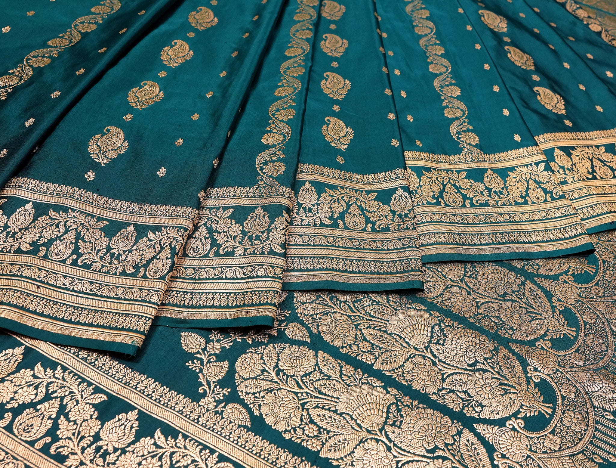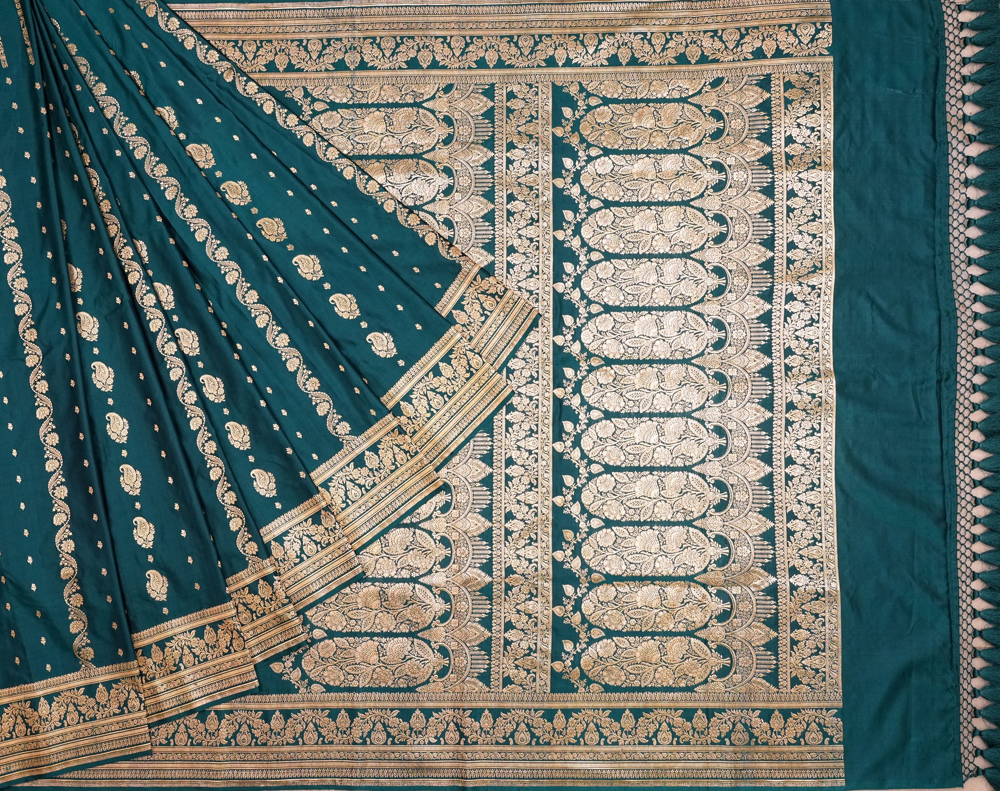 Pure Satin Silk Cut Work saree in peacock blue ideal for festive and wedding wear