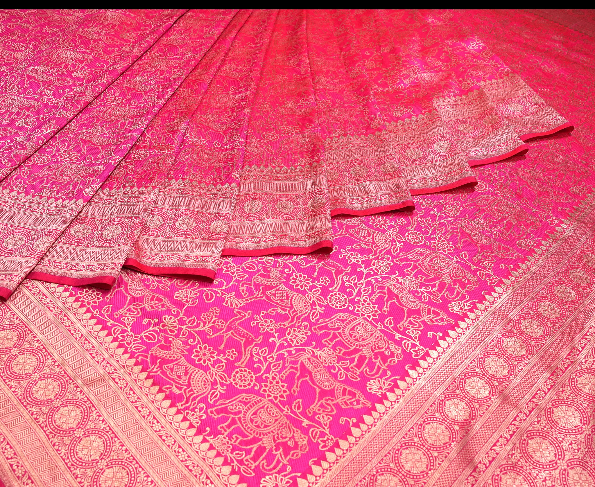 Shikargah Weave saree in pink ideal for festive and wedding wear