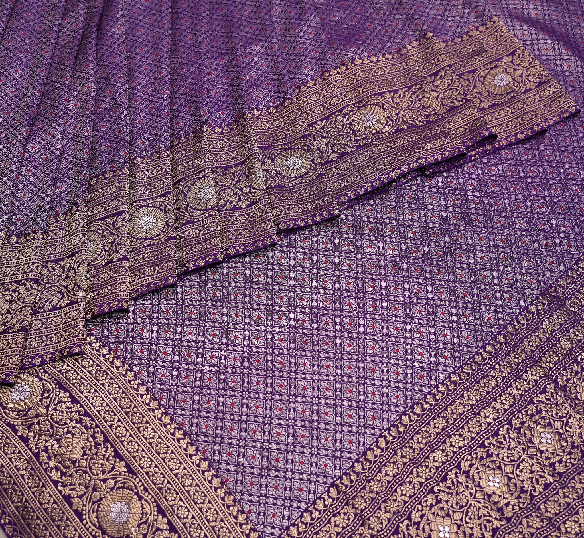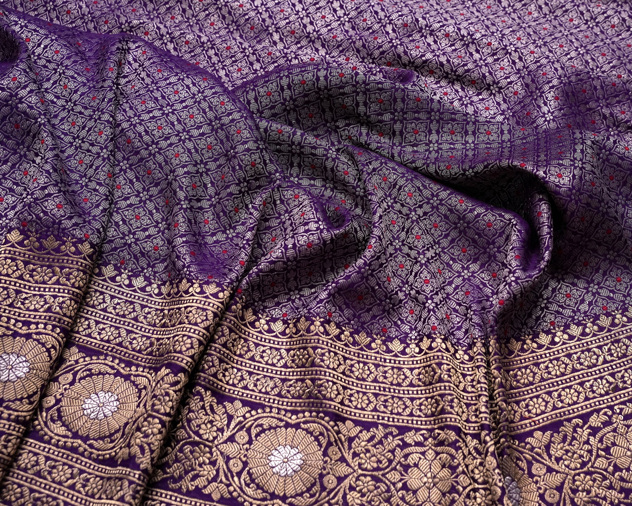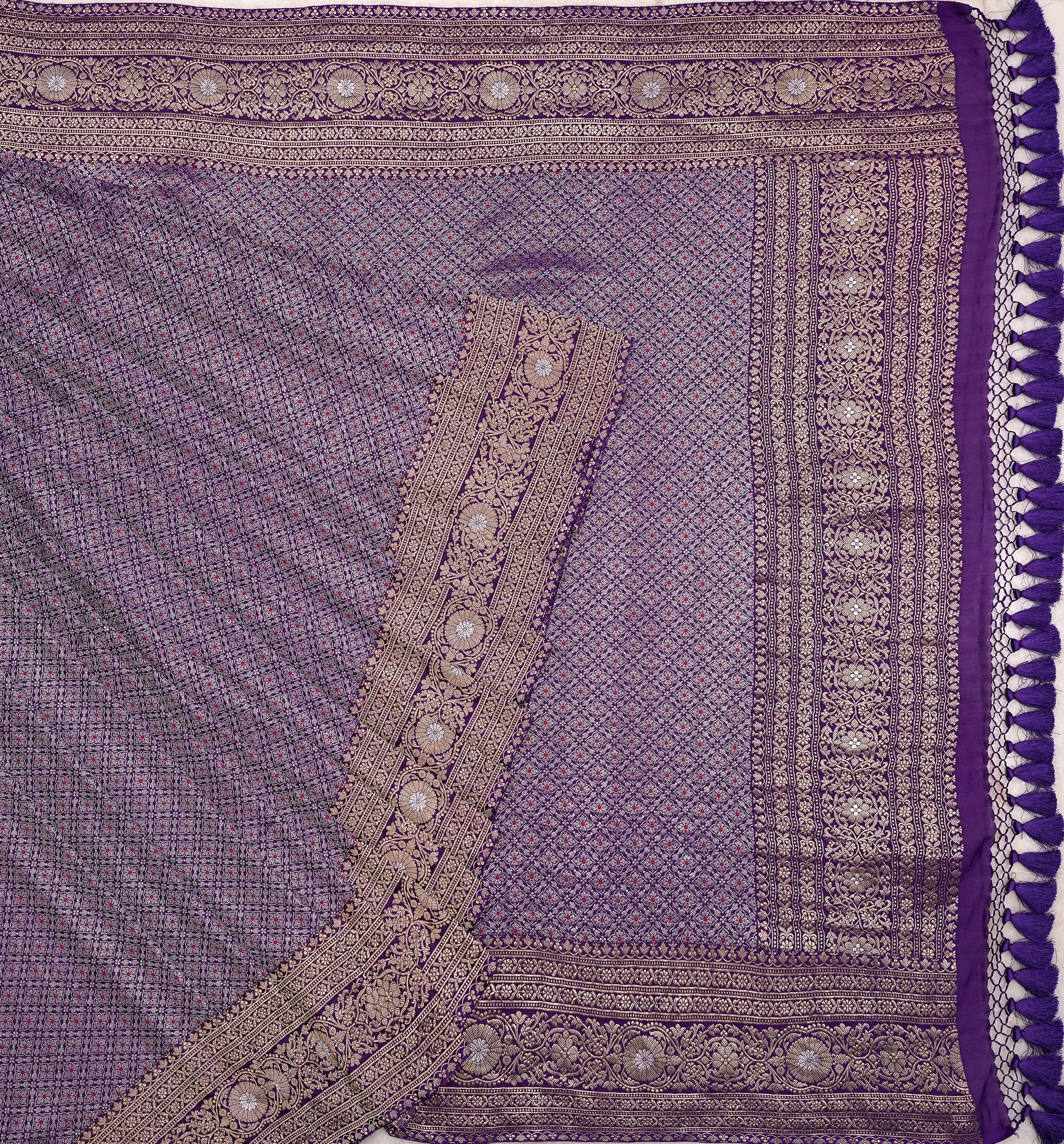 Brocade Georgettes With Meenakari saree in purple ideal for festive and wedding wear