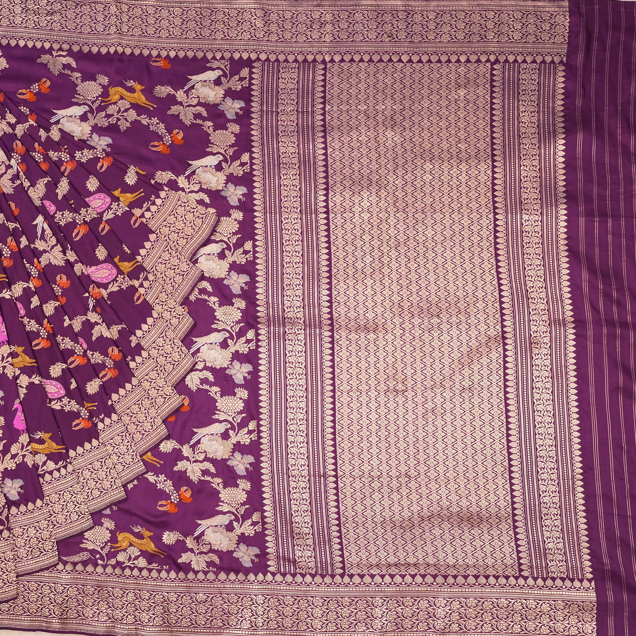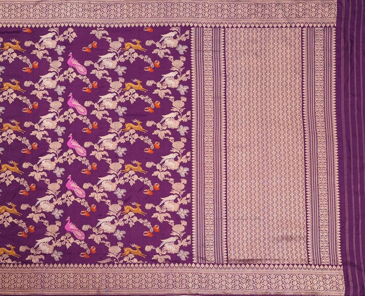 Kadwa Jangla Shikargha Weave saree in purple ideal for festive and wedding wear