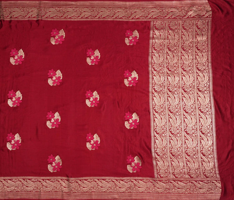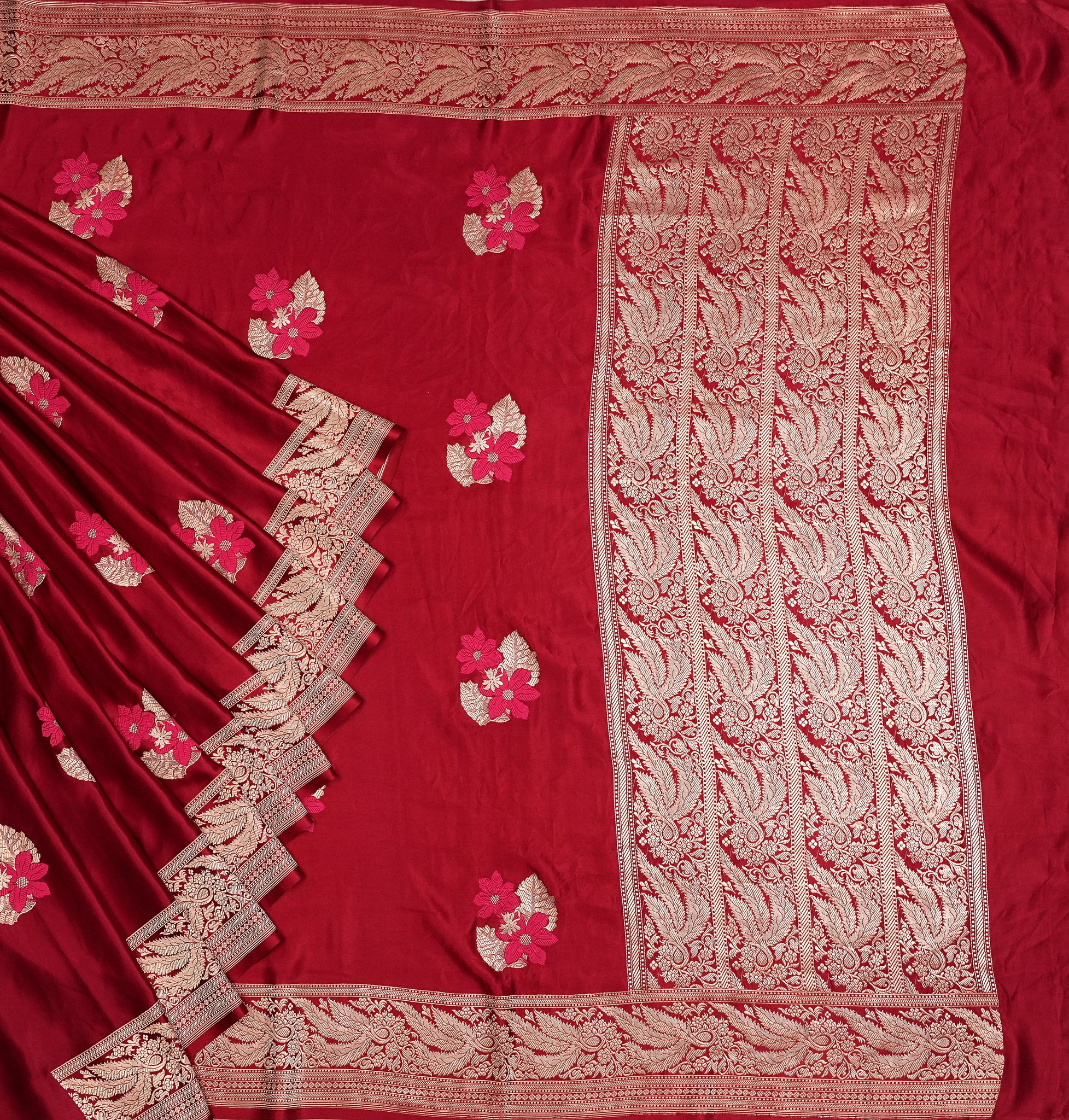 Mashru Silk With Meenakari saree in red ideal for festive and wedding wear