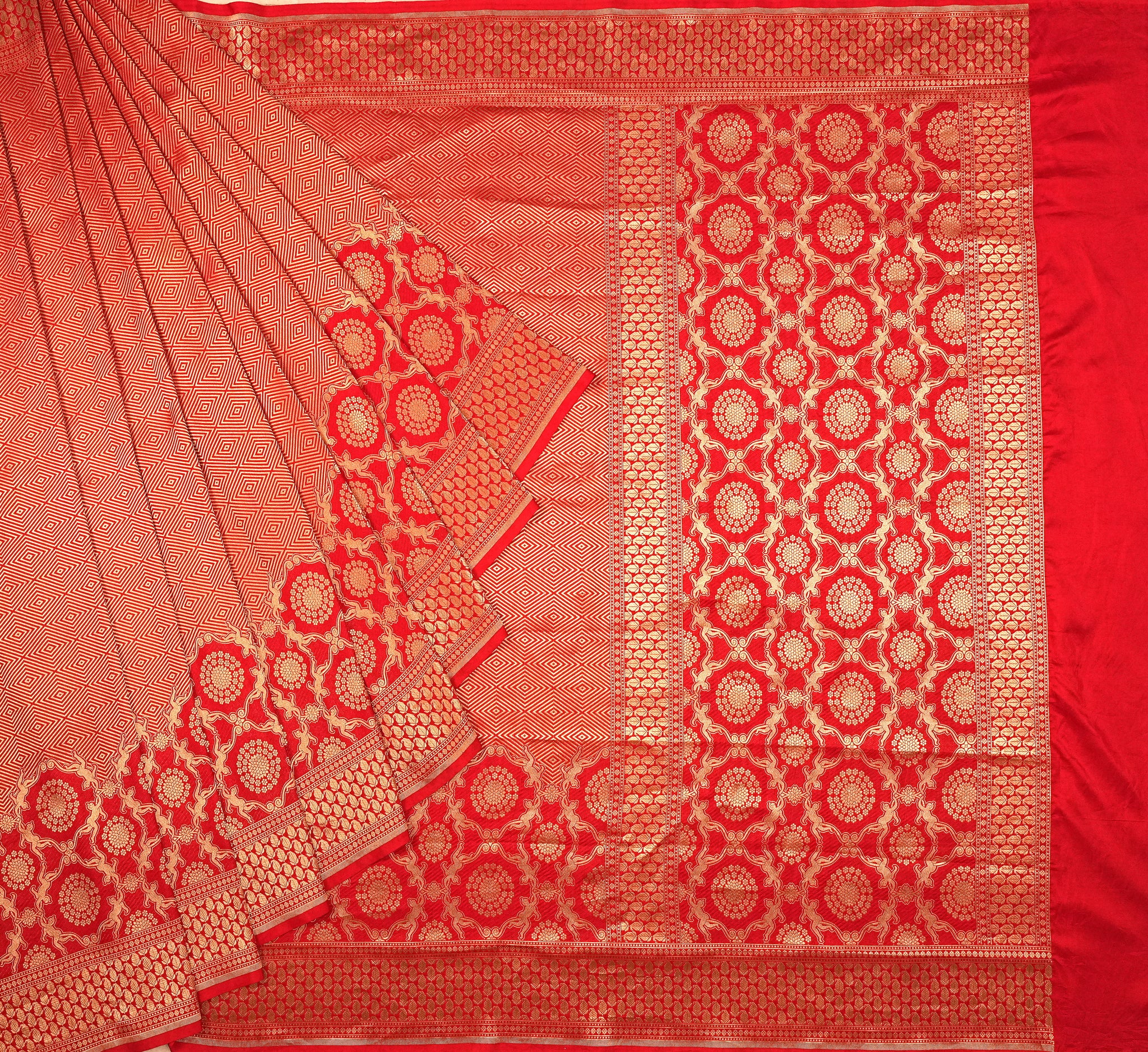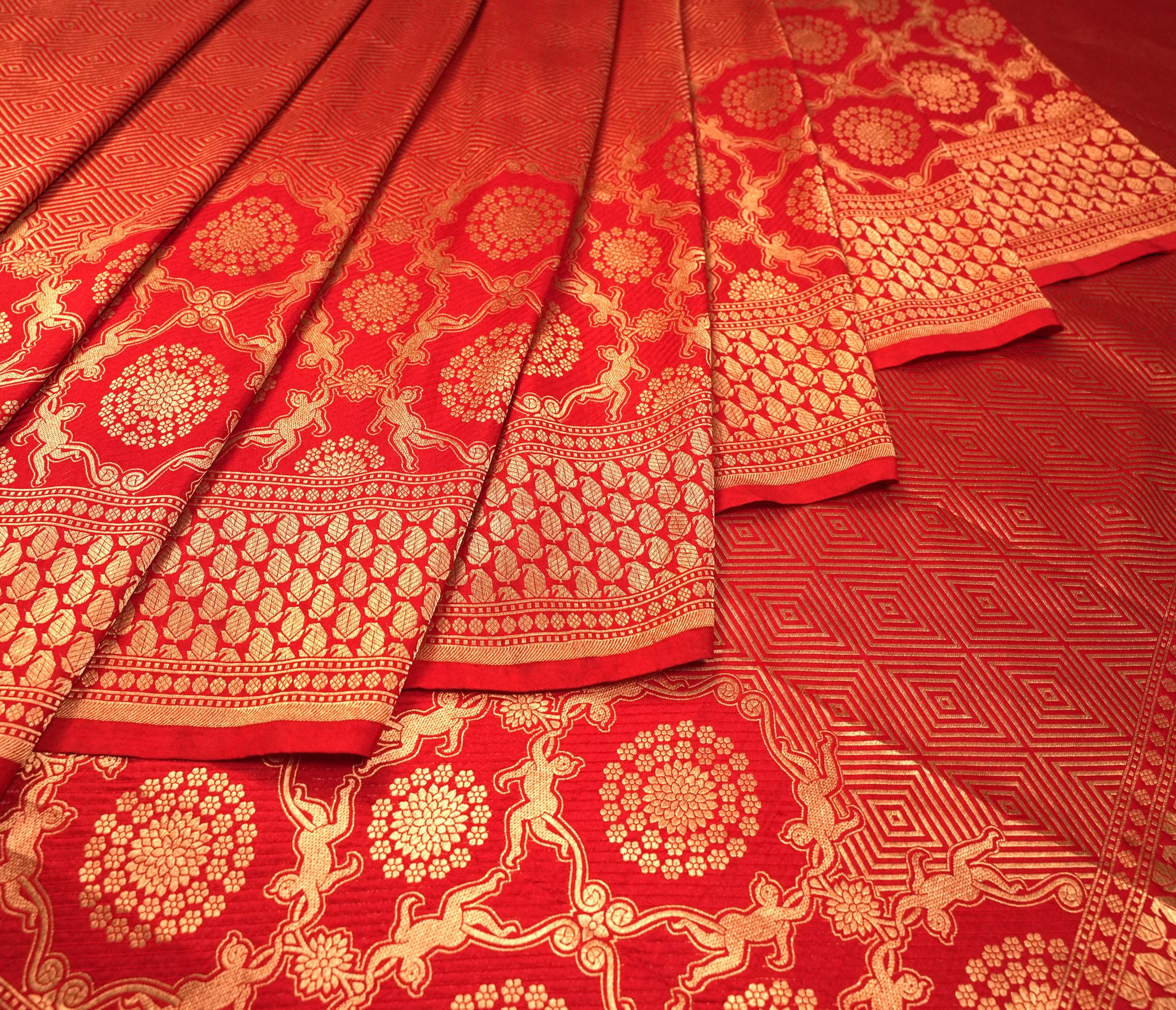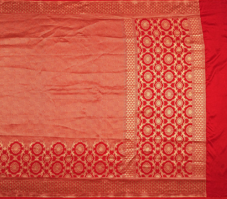 Pure Silk Brocade Weave saree in red ideal for festive and wedding wear