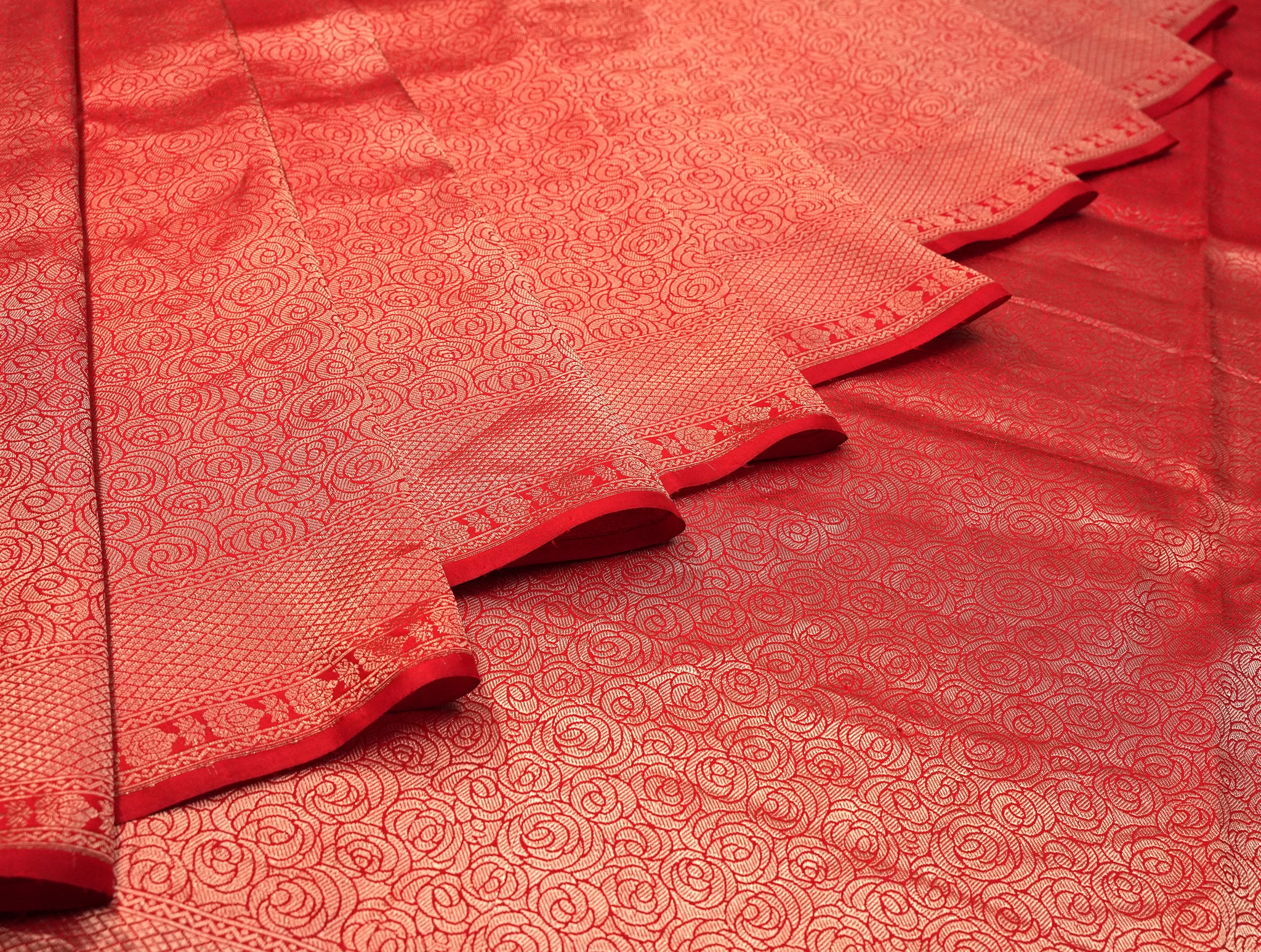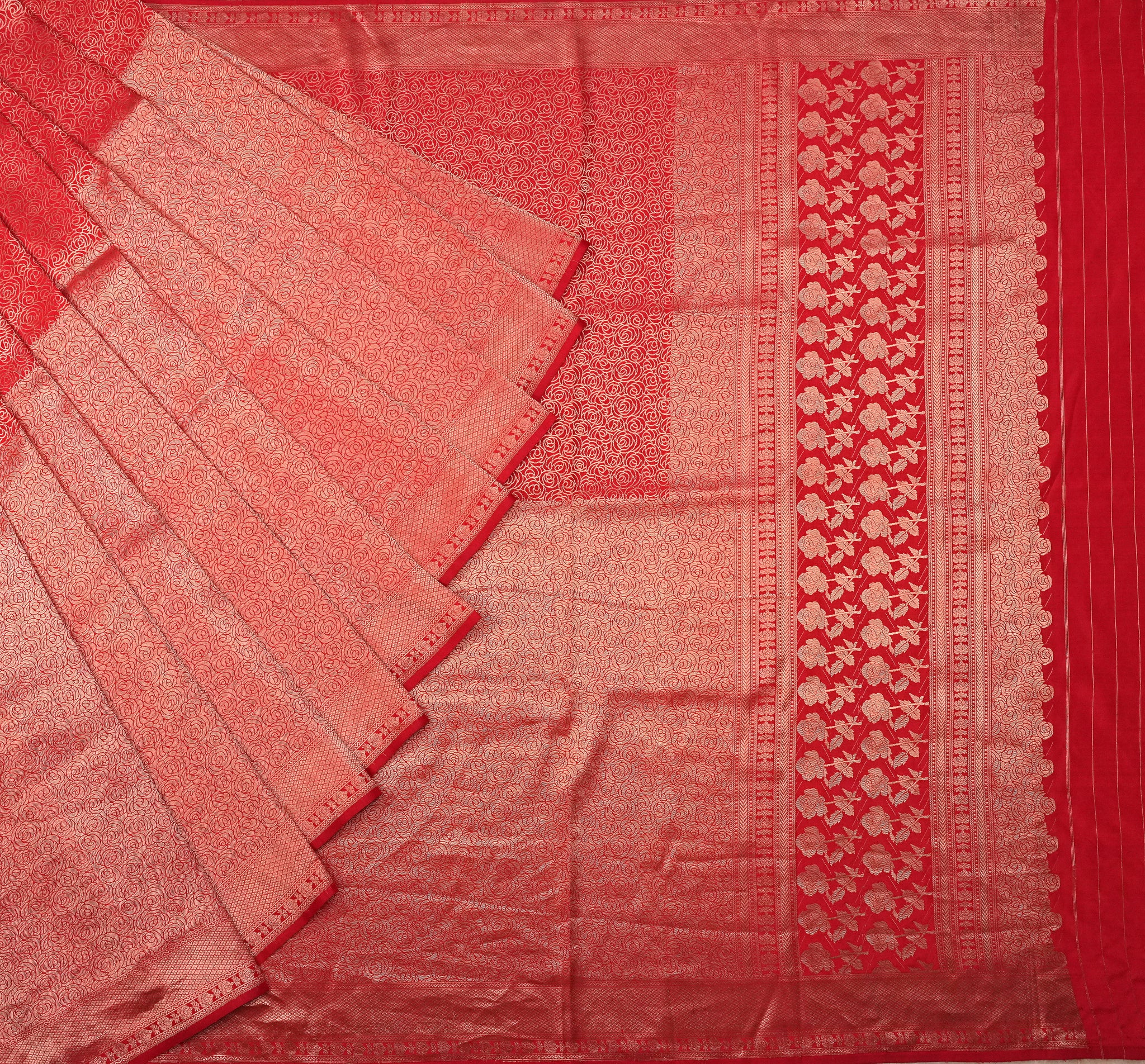 Pure Silk Brocade Weave saree in red ideal for festive and wedding wear