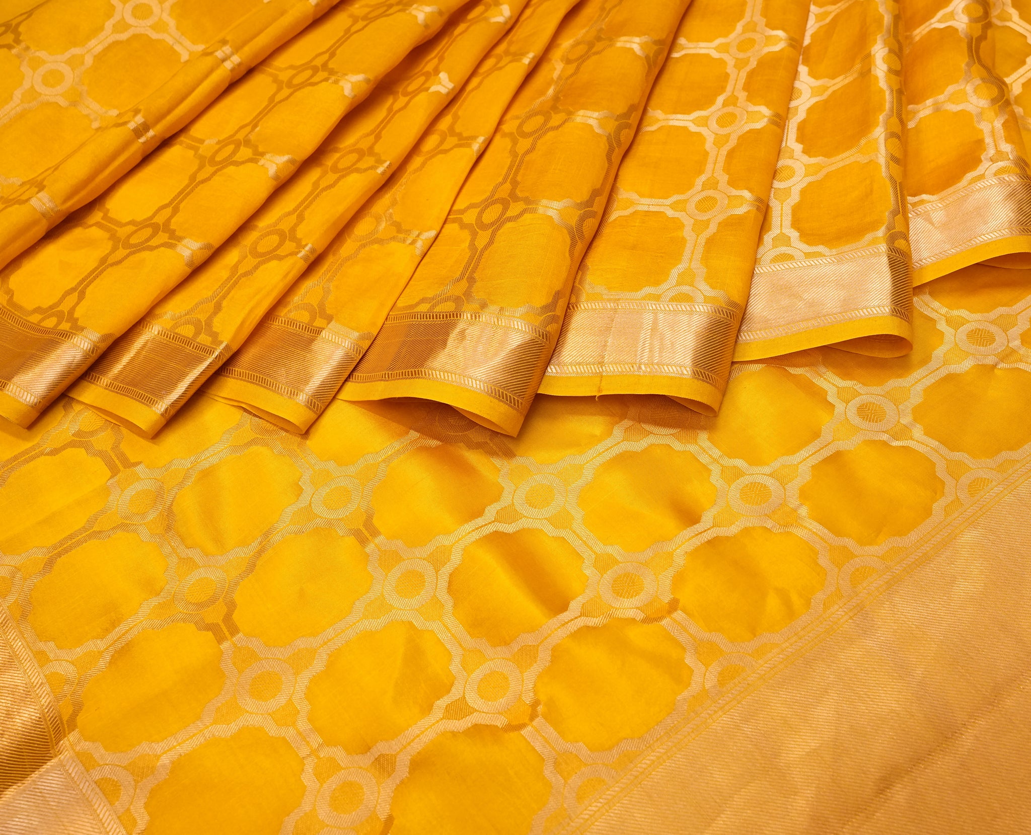 Banarasi Light Weight Silk saree in yellow ideal for festive and wedding wear