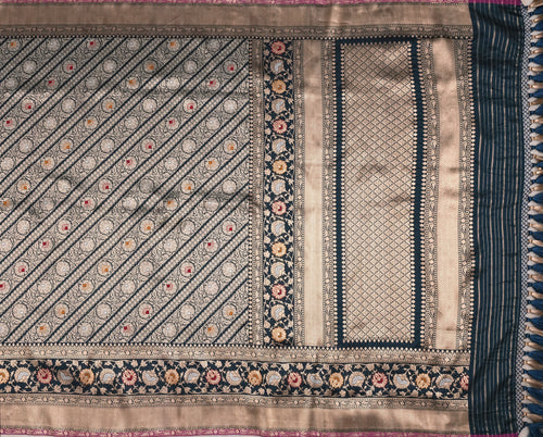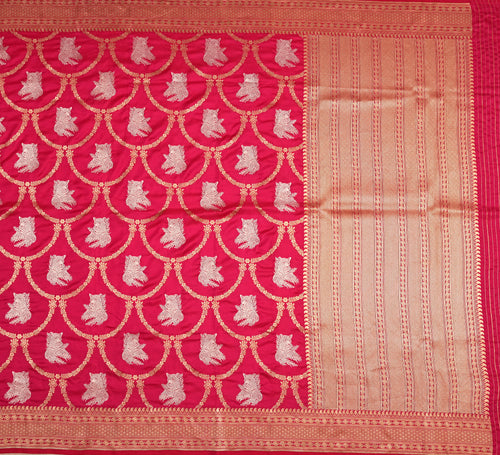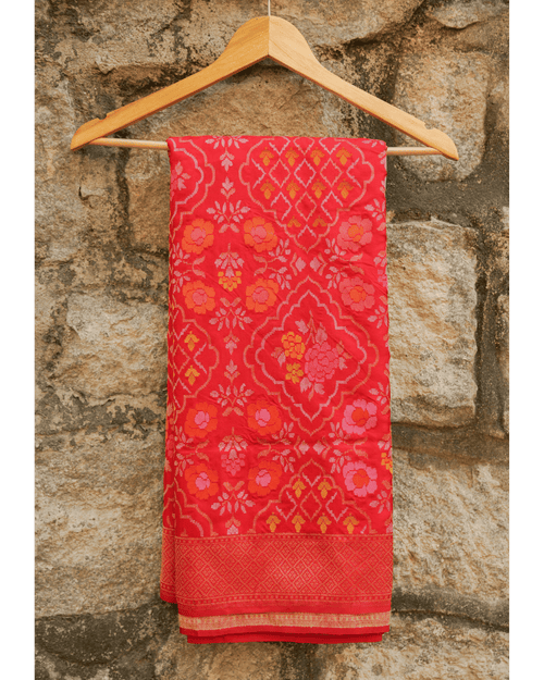 Royalty exudes in every weave! The dual tone pure silk base in Pinkish orange showcases an intricate kadwa Jaal weave with shadow work, this Banarasi saree sets a perfect example of tradition, rich Indian handloom, and excellence!