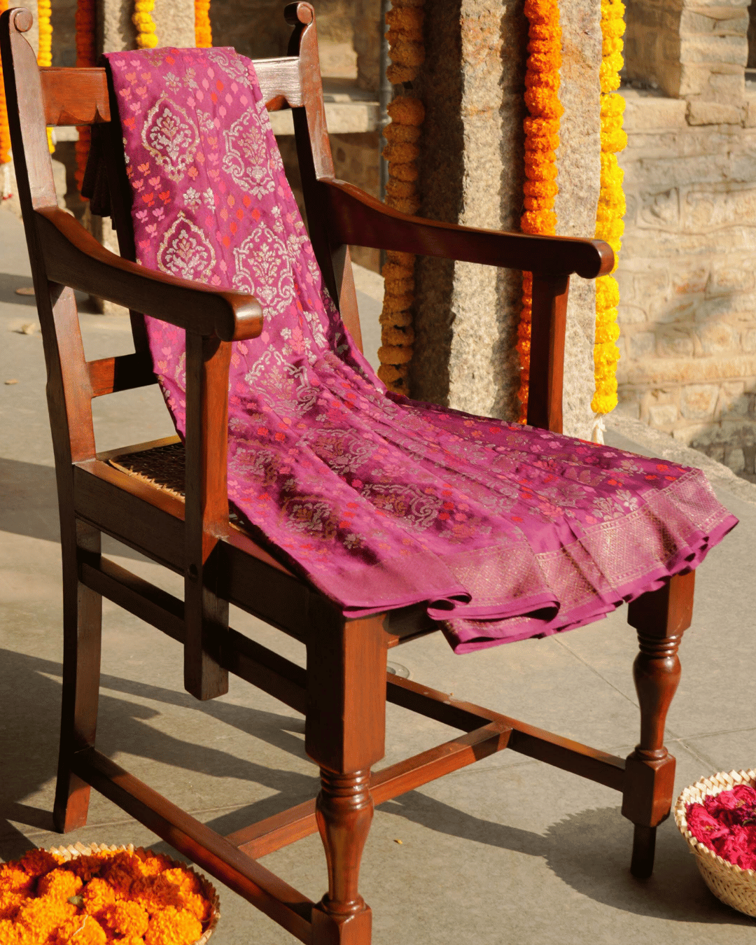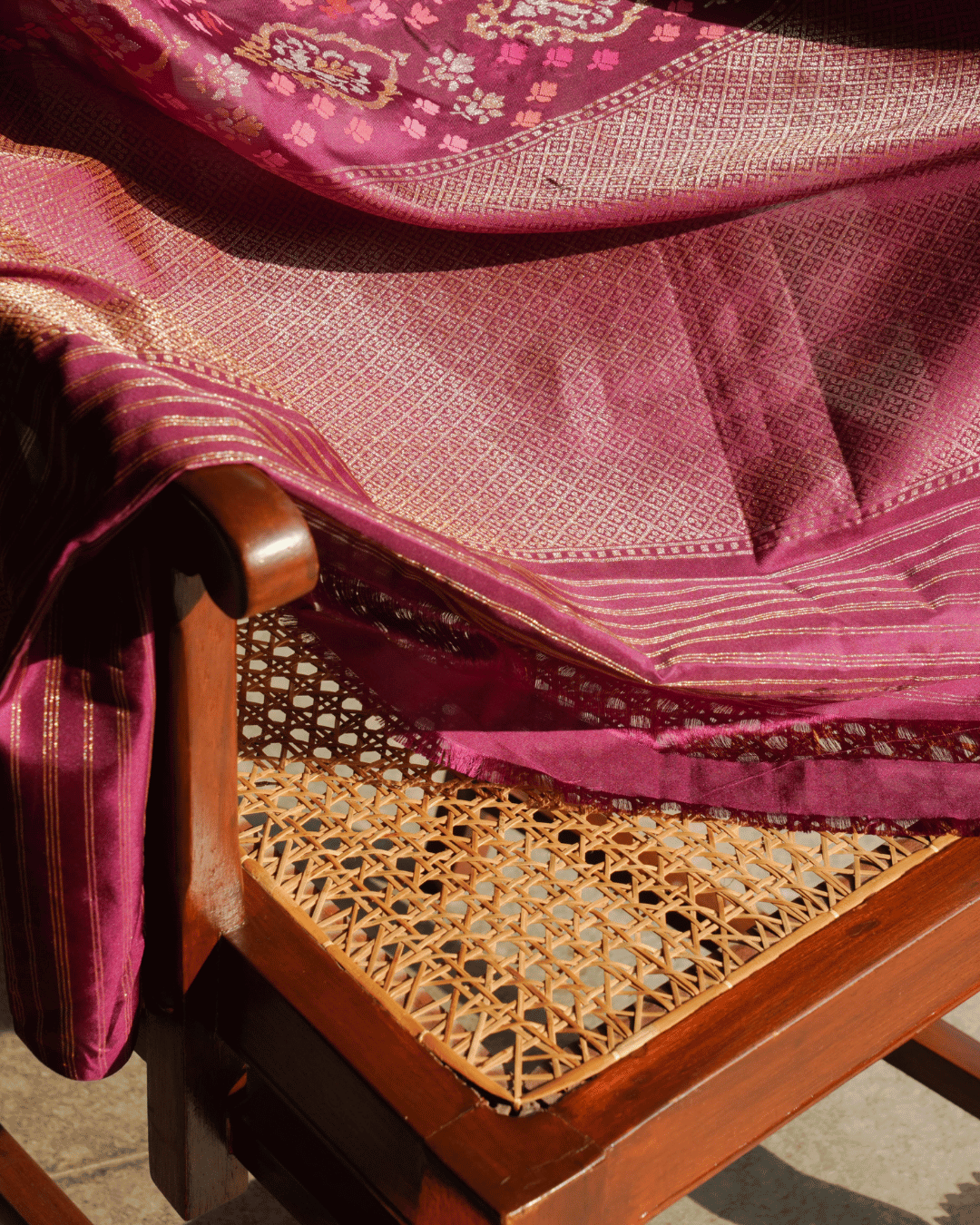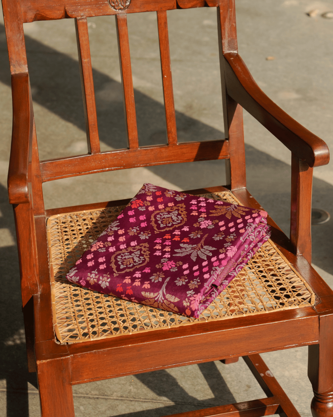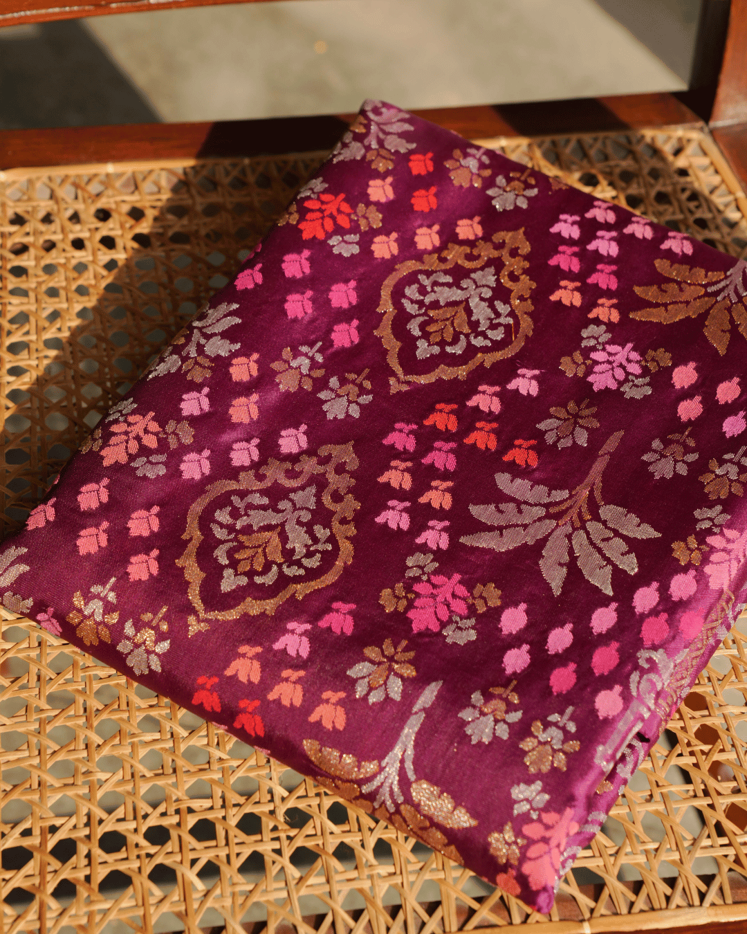 Maroon Jamdani Silk with Meenakari,100% Real Silver Zari | Bridal Edition