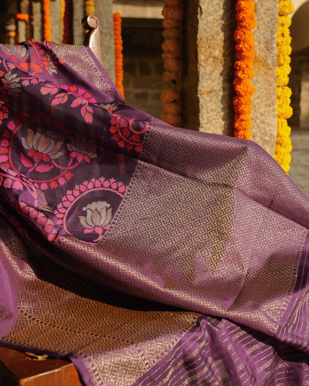 Rajyalakshmi Heritage Banaras Sareesnew arrivaltraditional trunkadd-to-cart//rajyalakshmi.co.in/cdn/shop/files/10_7d92e602-e29c-4185-93ba-a44f378568f6.png?v=1768982360//rajyalakshmi.co.in/cdn/shop/files/11_ebc2c7f6-3405-4d25-9368-0bf0e4ac437c.png?v=1768982360//rajyalakshmi.co.in/cdn/shop/files/12_c96174fe-a588-4e82-9139-7ab71ce74d70.png?v=1768982360//rajyalakshmi.co.in/cdn/shop/files/13_52108ae1-affc-4ed4-8a8a-57104474bf9e.png?v=1768982360//rajyalakshmi.co.in/cdn/shop/files/14_8ff45047-19e3-4c1e-bb3d-bec35b6bd25a.png?v=1768982360//rajyalakshmi.co.in/cdn/shop/files/15_83ac9448-853a-40d2-a7e8-49a70cb98775.png?v=1768982360//rajyalakshmi.co.in/cdn/shop/files/16_835ca3c8-4d21-41f3-9d89-f3e8954c1c63.png?v=176898236044894849138735Default Title267000.00//rajyalakshmi.co.in/cdn/shopifycloud/storefront/assets/no-image-2048-a2addb12.gifhttps://rajyalakshmi.co.in/products/purple-jamdani-silk-with-meenakari-100-real-silver-zari-designer-saree?variant=44894849138735InStockDefault Title